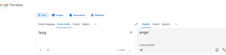 Google Translates "Feirg™" from Scots Gaelic to "Anger" in English